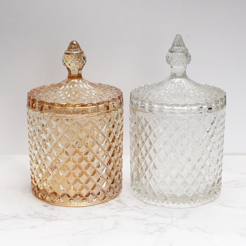 Roman Prismatic Vintage 140Ml 300ml 550ml Tarro de vidrio para dulces Contenedores de tarros de velas de lujo iridiscentes con tapas de vidrio