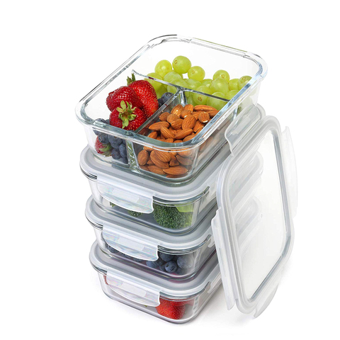 Contenedores de vidrio para almacenamiento de alimentos con tapas Contenedores de vidrio para preparación de comidas Cajas herméticas Bento Fiambrera de vidrio a prueba de fugas
