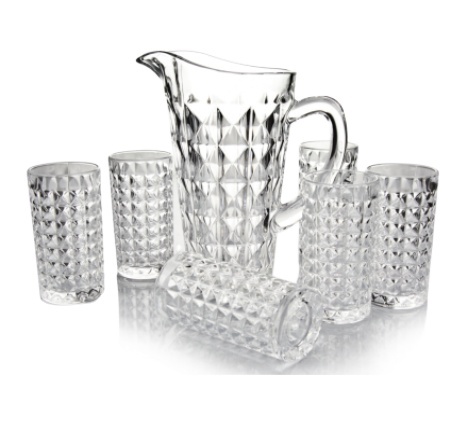 Jarra árabe de alta calidad para beber con juego de tazas patrón grabado cristalería té frío/caliente limonada jarra